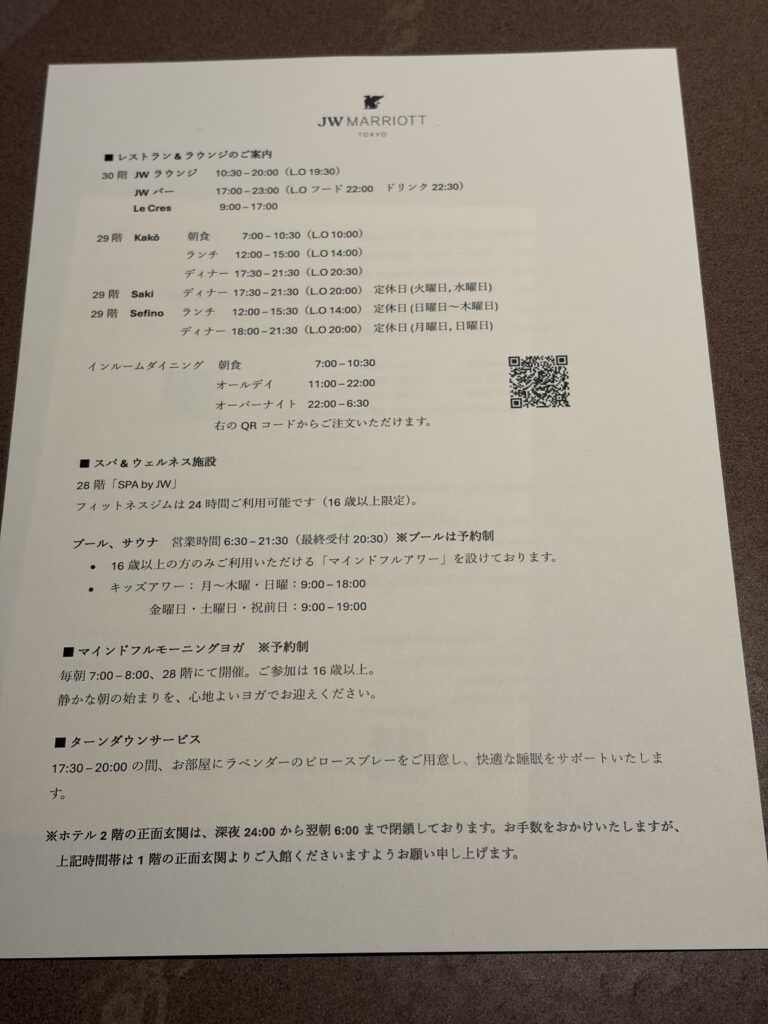 これがJWマリオット東京に宿泊するうえで、大きな魅力のひとつです。