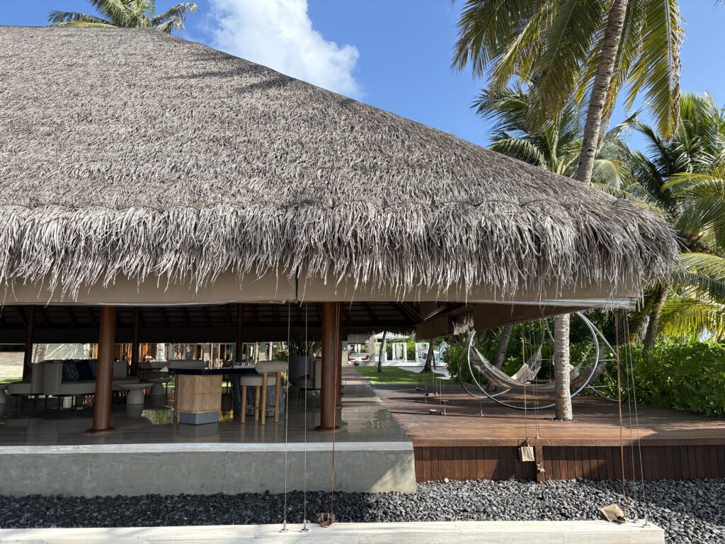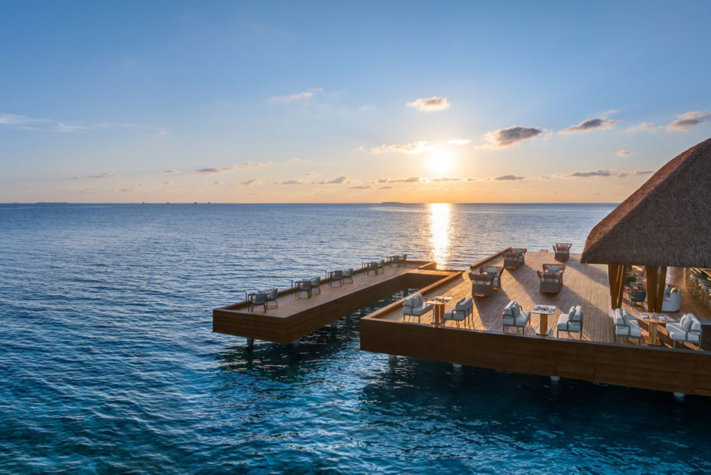 海に向かって開けた開放感のあるバー&ラウンジで、ゆるやかな潮風とモルディブのサンセットを感じながら過ごせます。