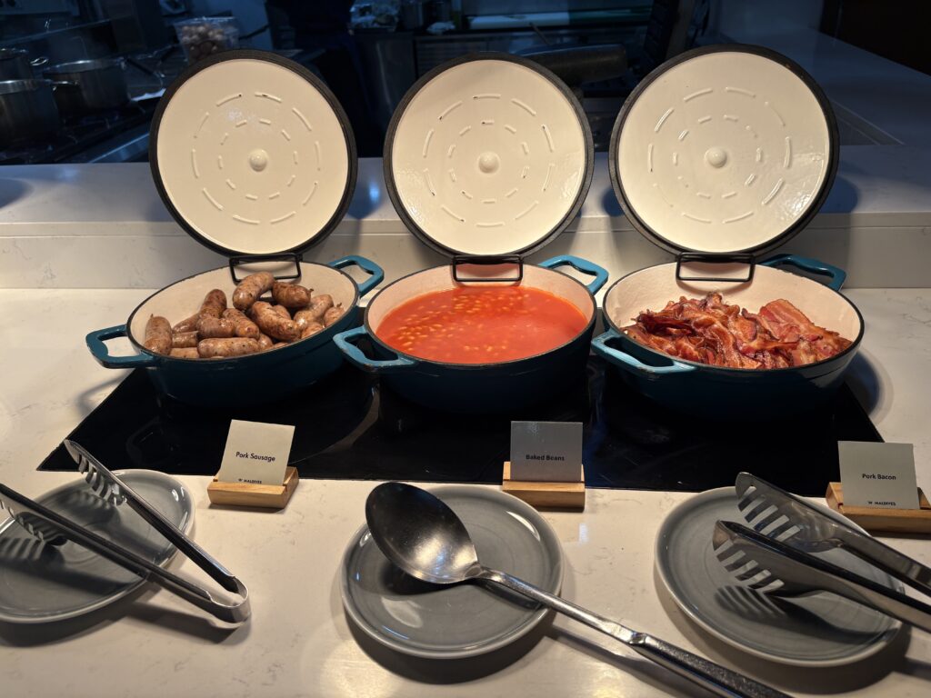 温かい料理は、ベーコンやソーセージ、ビーンズに加え、