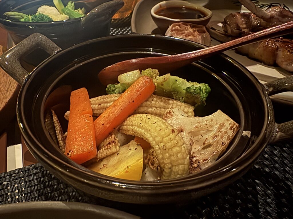 コンセプトはグリルと炭火料理で、肉や野菜をじっくり焼き上げるスタイルです。