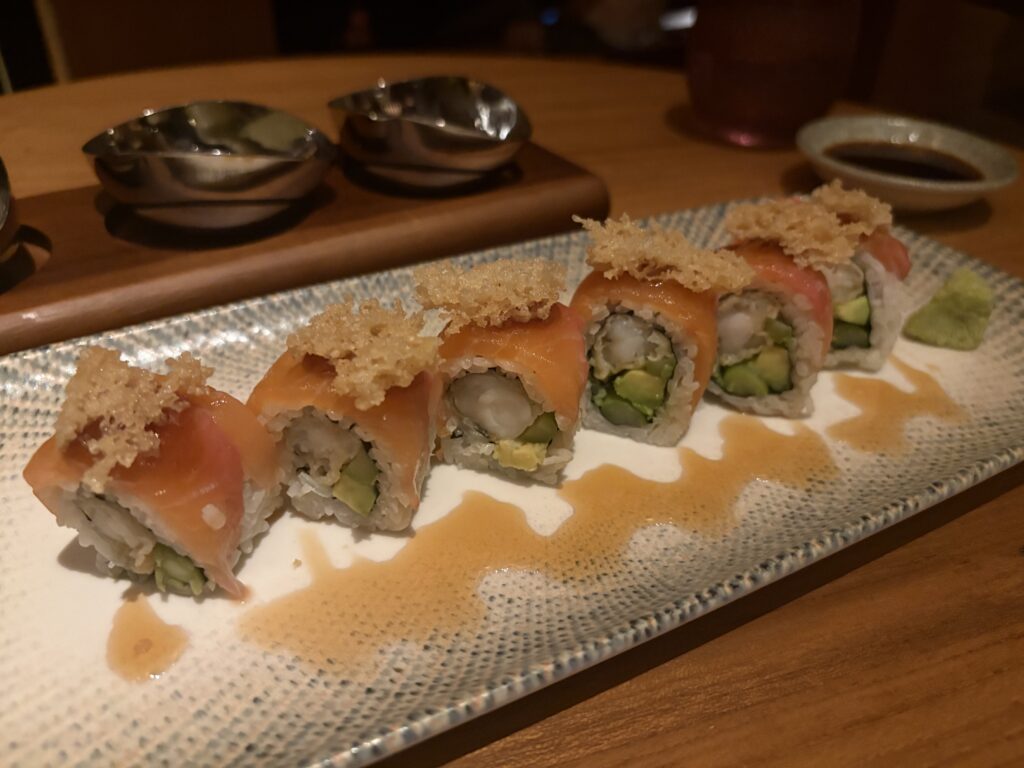 シャリはやや軽めで、重くなりすぎないのが好印象でした。中には海老とアボカドが巻いてあります。