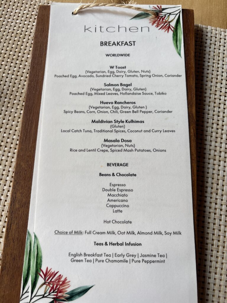 この記事では、私自身がWモルディブに滞在して実際に食べた朝食やレストラン体験をもとに、リアルな食事事情をまとめています。